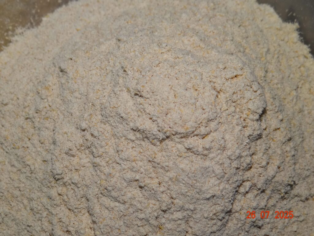 Whole barley contains around 13-15% of its weight as chaff. When milled with modern machines, the chaff is finely ground (disappears in the flour) and does not separate easily (it can’t be blown off by a breath). However, when we sieved 300 grams of Barley flour, we obtained 18 grams of chaff, which is 6 grams per 100 grams of flour. This indicates that nearly 9 grams of the chaff had already blended into the flour. Therefore, we don’t sieve our barley flour and use it with the entire chaff intact.